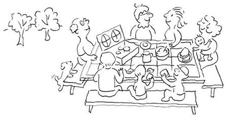 But while he talks about communal cooking and potlucks, he's suspiciously quiet on the picnic/bonfire option. Any of you tried that on the beach? Success, or alarming conflagration? All family reunion tips welcome