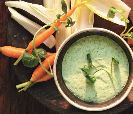 We thought a creamy tarragon or parsley dip would pair well with these earthy mushroom latkes. This green goddess dressing is packed with herbs and watercress, so it's extra green and zesty.